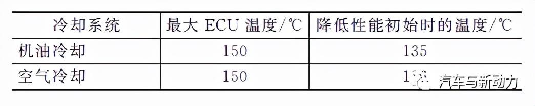 表1 在固定输入功率300 W的情况下,机油冷却和空气冷却系统的降低性能时的ECU温度
