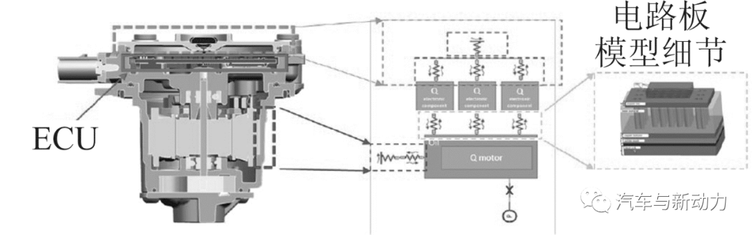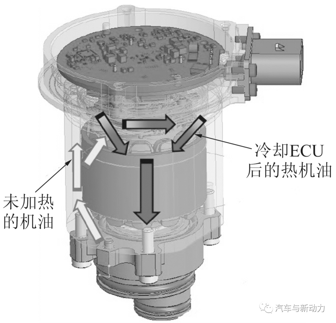 对于新能源汽车来说,由于具有挑战性的布置空间要求,并且发动机舱内缺乏空气流动,传统对流冷却系统已不适用。因此,研究人员需要配置内部集成冷却系统,利用泵内机油的流动来带走ECU 元件产生的热量。