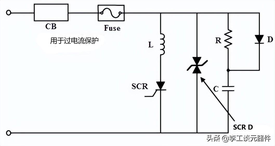 具有基本电路元件的晶闸管(可控硅)保护电路