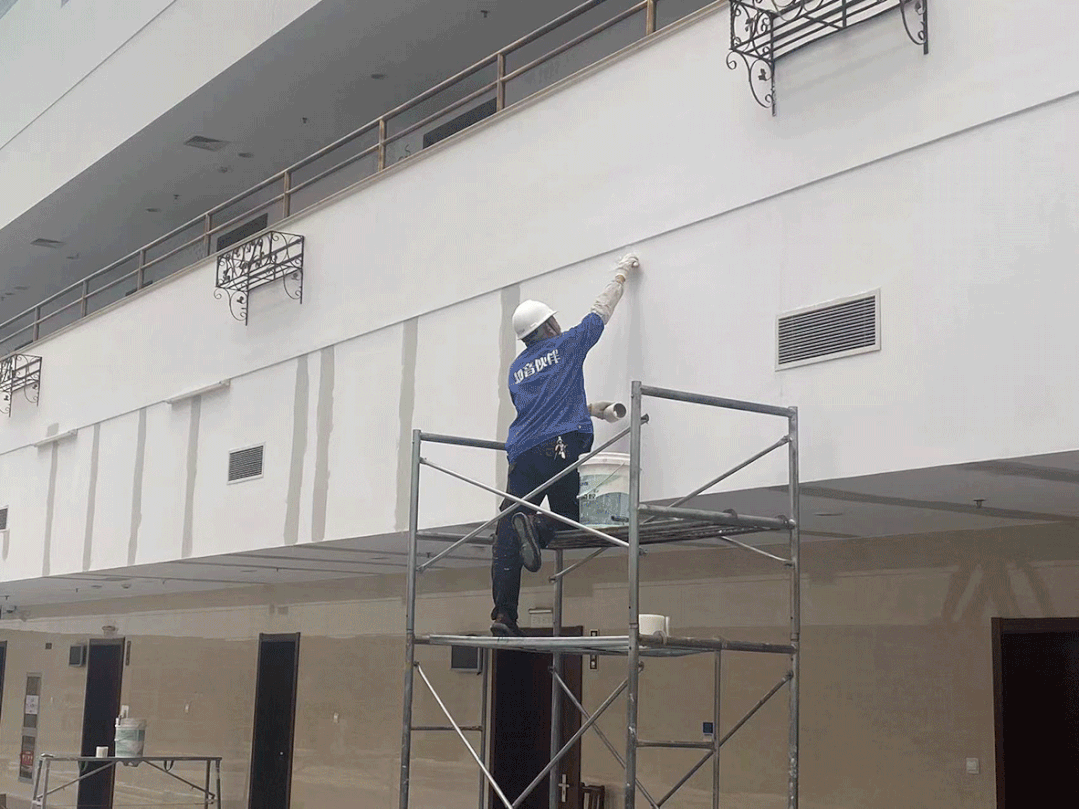 针对本院基础设施存在部分墙体开裂、墙面脱落等问题,金山法院组织工作人员进行墙体维修、墙面修复