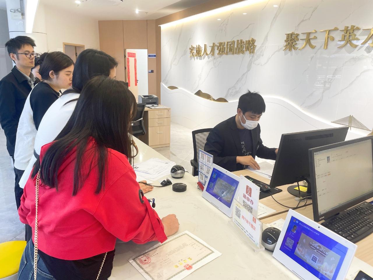 除了“加急办”,人才中心不断深化“上门办”内涵,围绕人才服务站和企业点单,人才服务专员以讲座、沙龙、进企服务等形式送上政策宣传和业务指导。同时,基于“一网通办”容缺功能,努力让办事群众少跑腿、快办事。