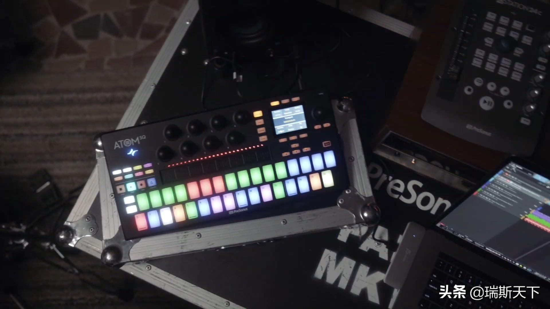 下面的32步进音序器,除了可以为琶音服务以外。它还是带力度感应的打击垫,RGB的配色看起来就和STUDIO ONE 特别搭,使用鼓节奏响应特别快,最惊喜的是,它的和弦功能,上来就能弹9和弦,一共有5个音,相比那些三和弦的就更高阶一些,当然自定义和弦也是可以的,ATOM SQ这次升级,在操作上来说,简直就是和STUDIO ONE融为一体,很多像插入乐器,音符长度的编辑和自动化的一些控制,都可以快速的编配使用,整合度特别高,软硬件用起来都很舒服,对于提升工作效率真的不是开玩笑,音色部分还送两款定制的LOOP音色包,确实特别良心。