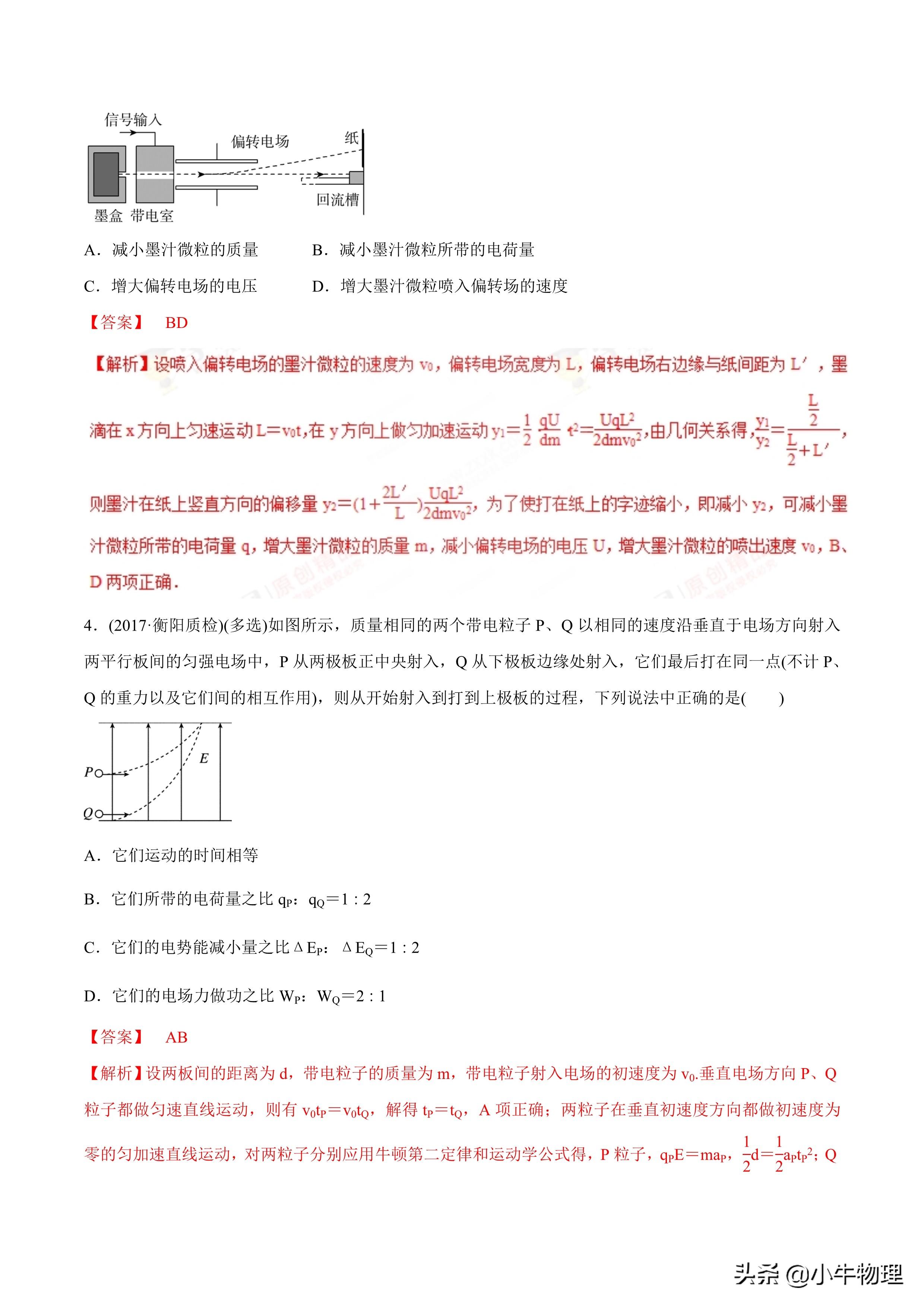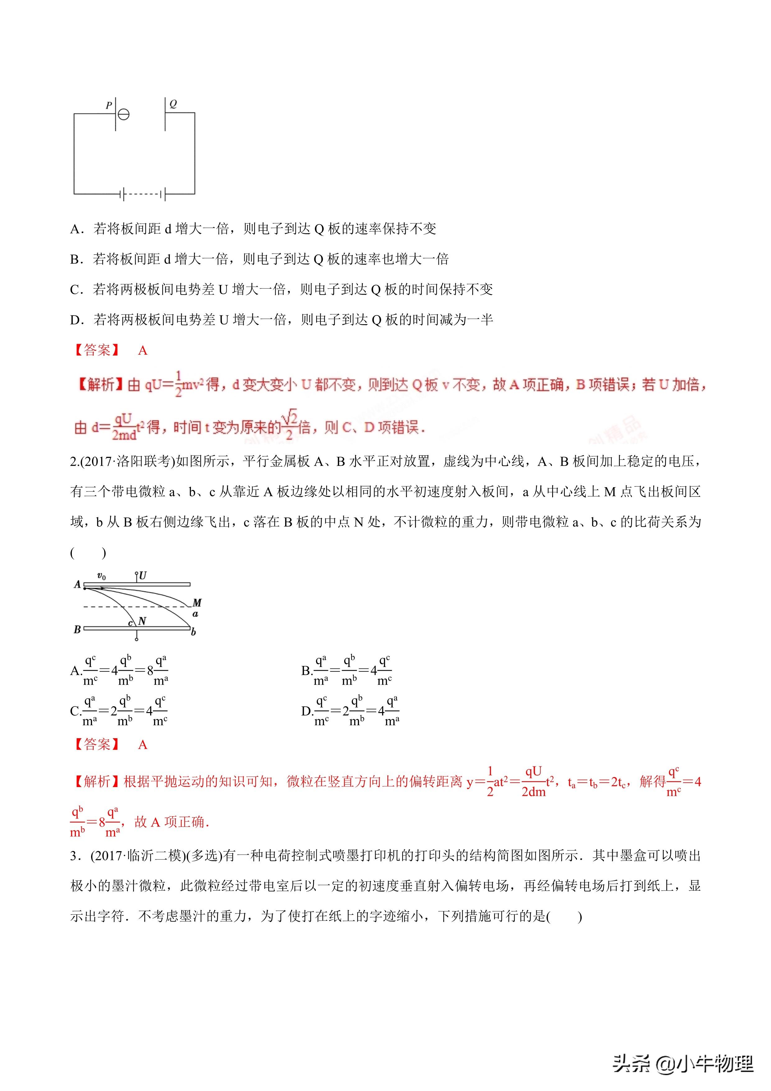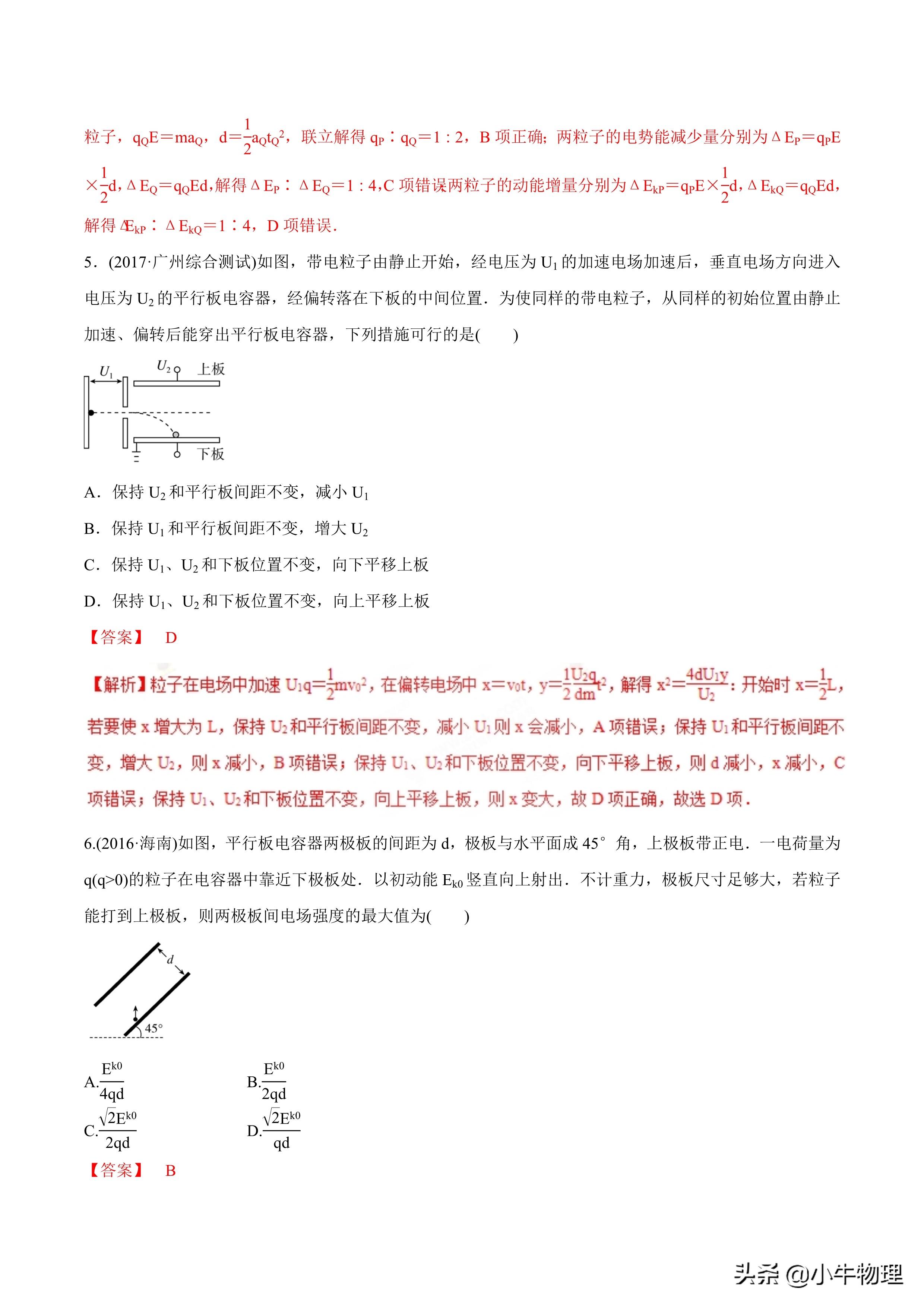 【解答】 根据前面分析的“加速”规律可知,粒子进入偏转电场时的初速度