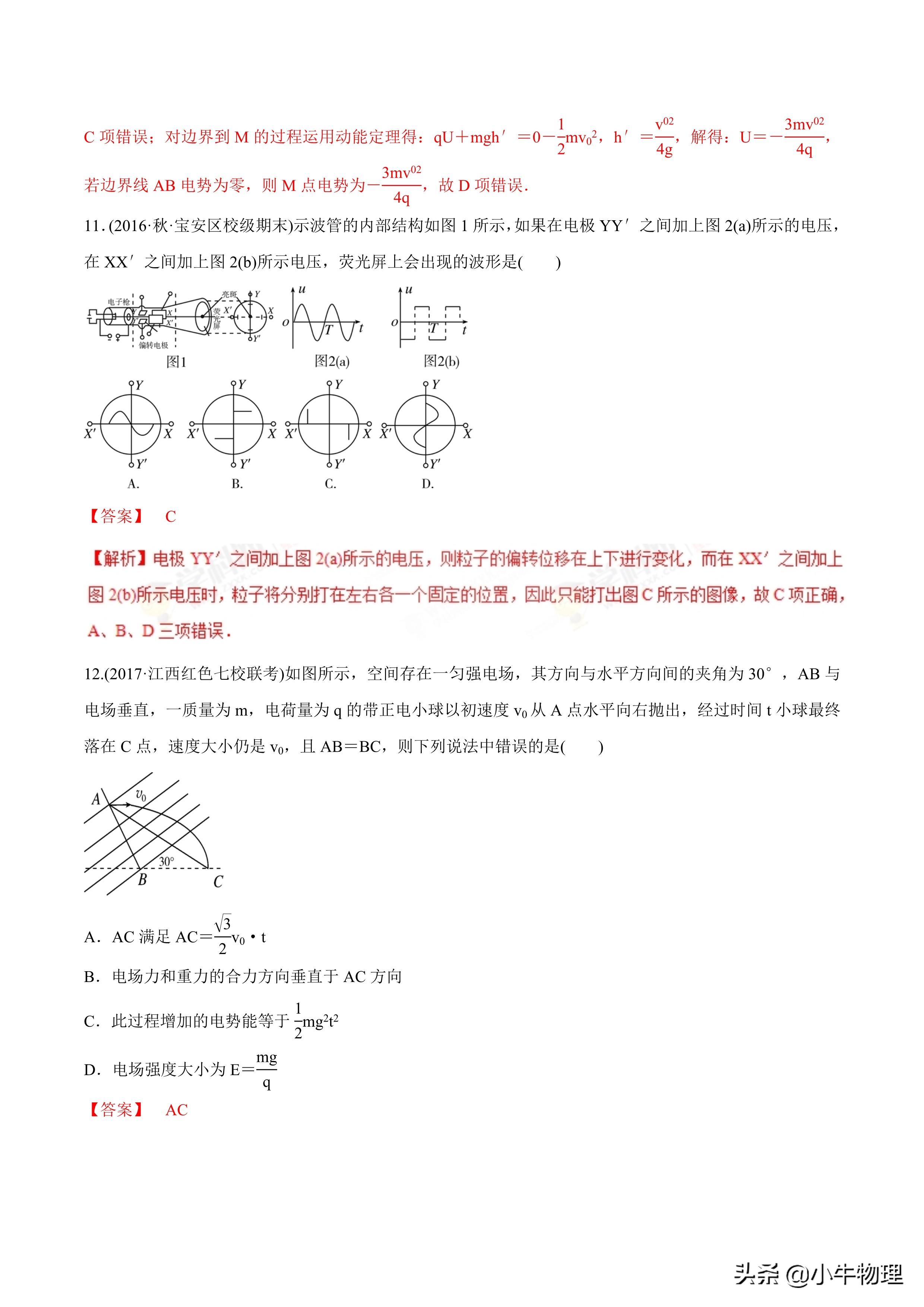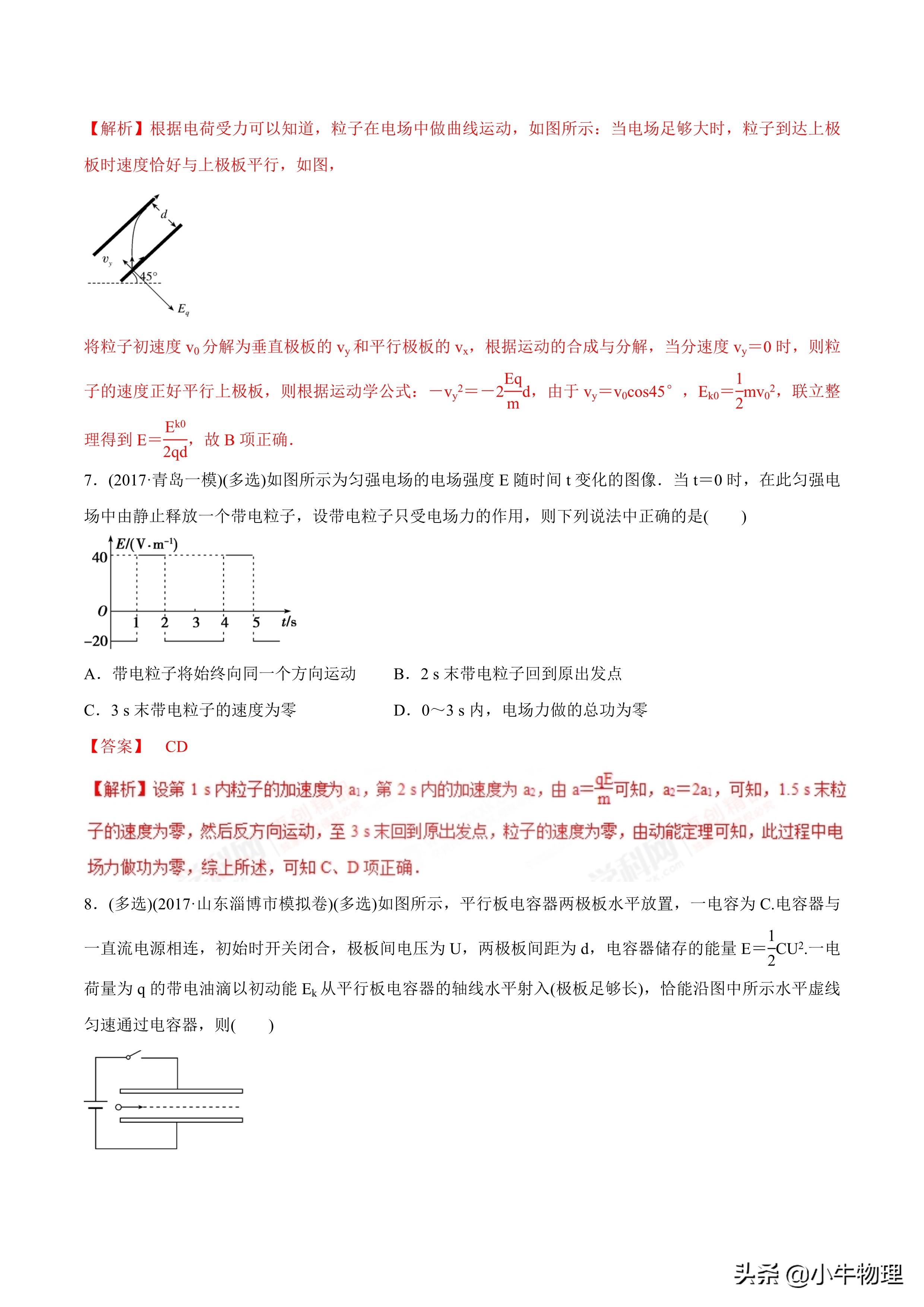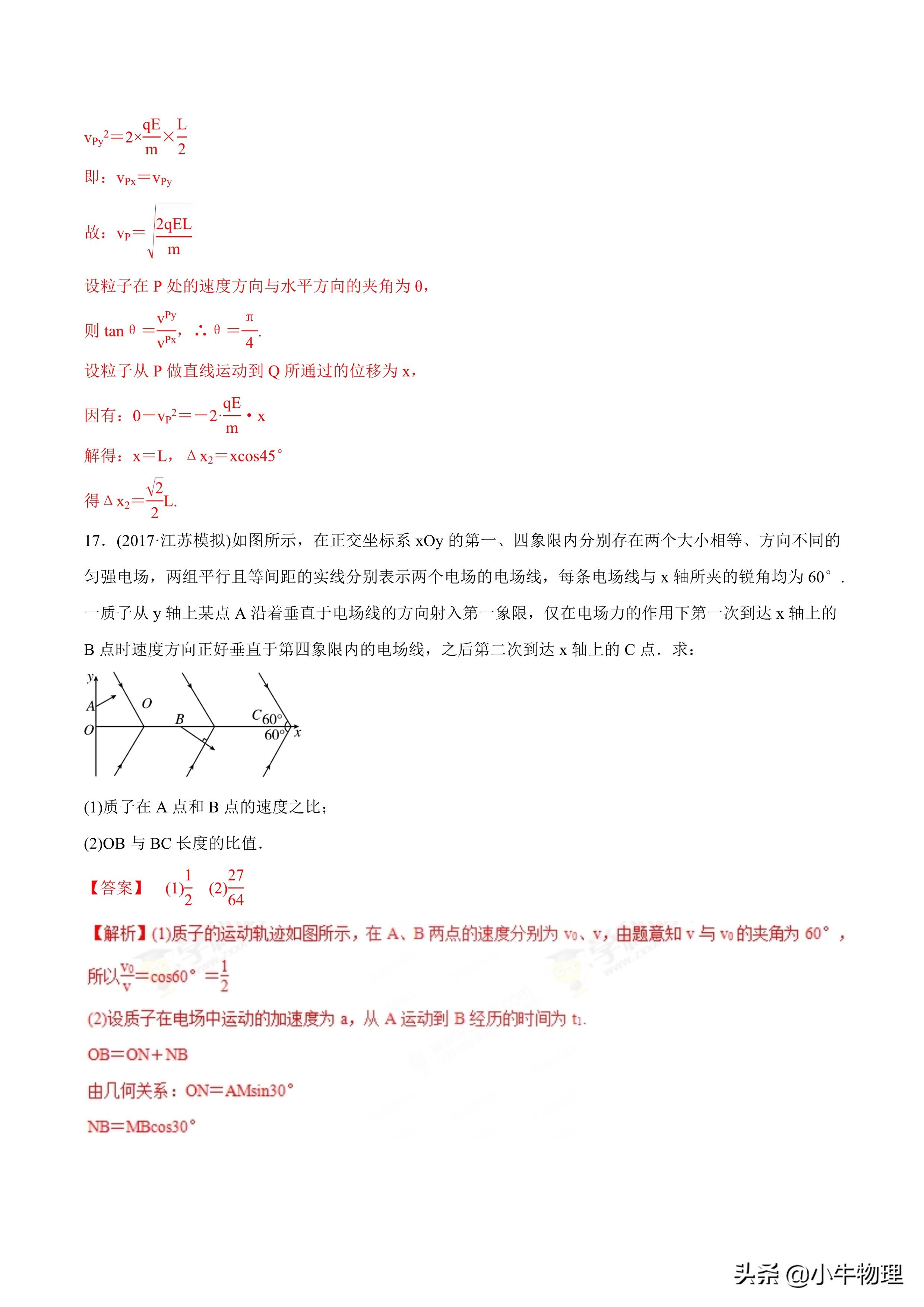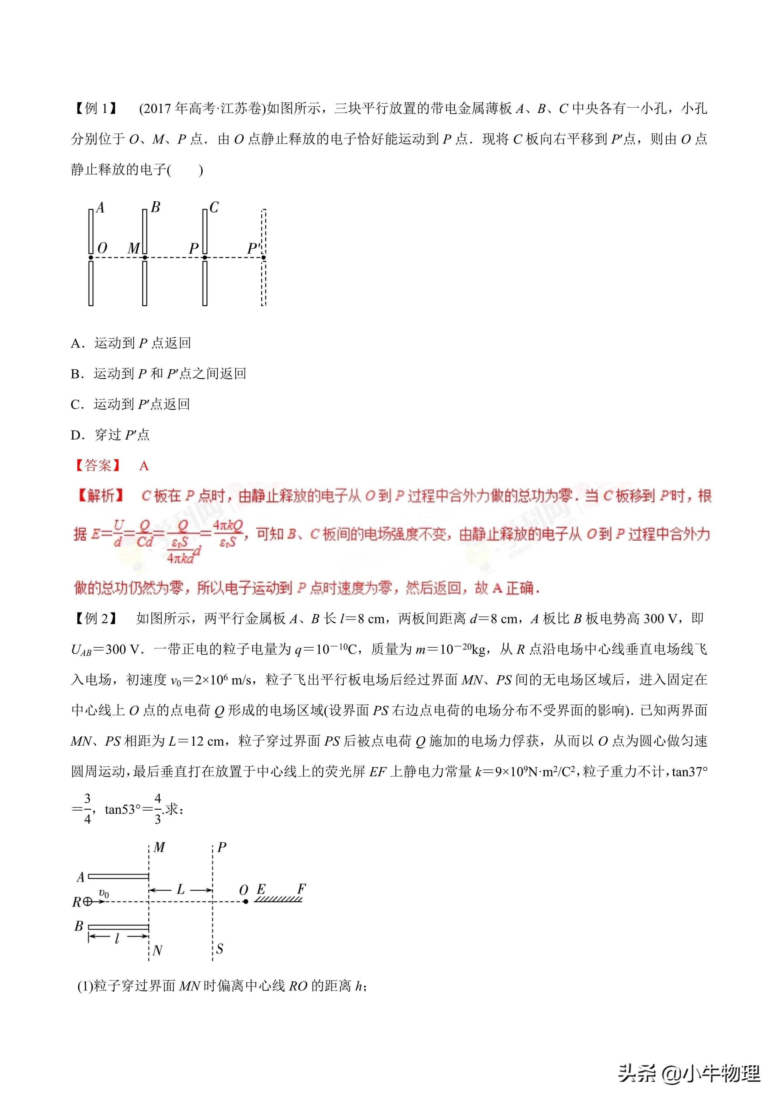 【解答】 根据前面分析的“加速”规律可知,粒子进入偏转电场时的初速度