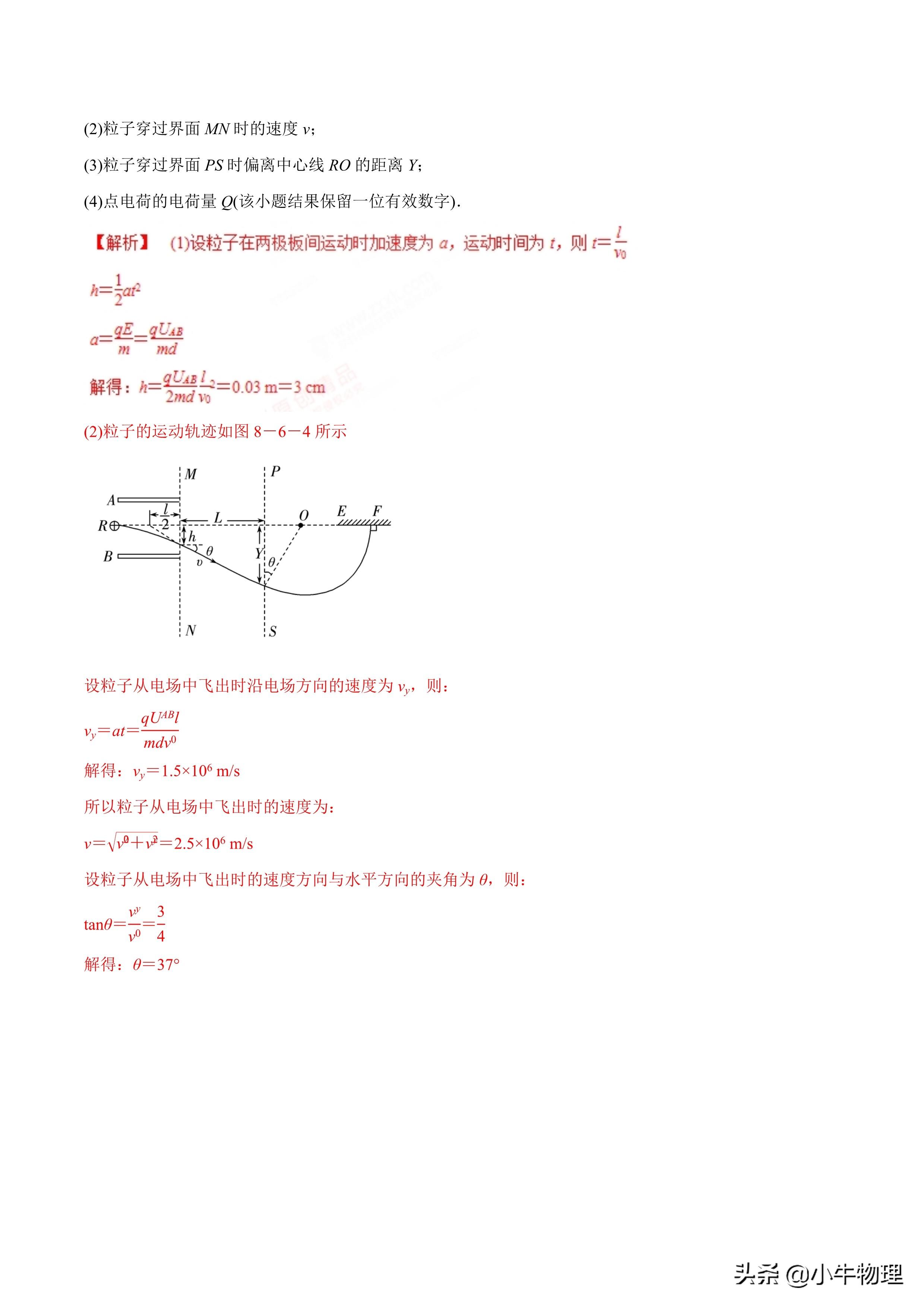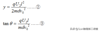 将①分别代入②③两式得,粒子射出电场时的偏移距离y和偏角θ的正切分别为