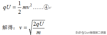 从上式可以看出,粒子在电场中加速时获得的速度v与加速电压U有关,与金属板M、N的距离d无关。