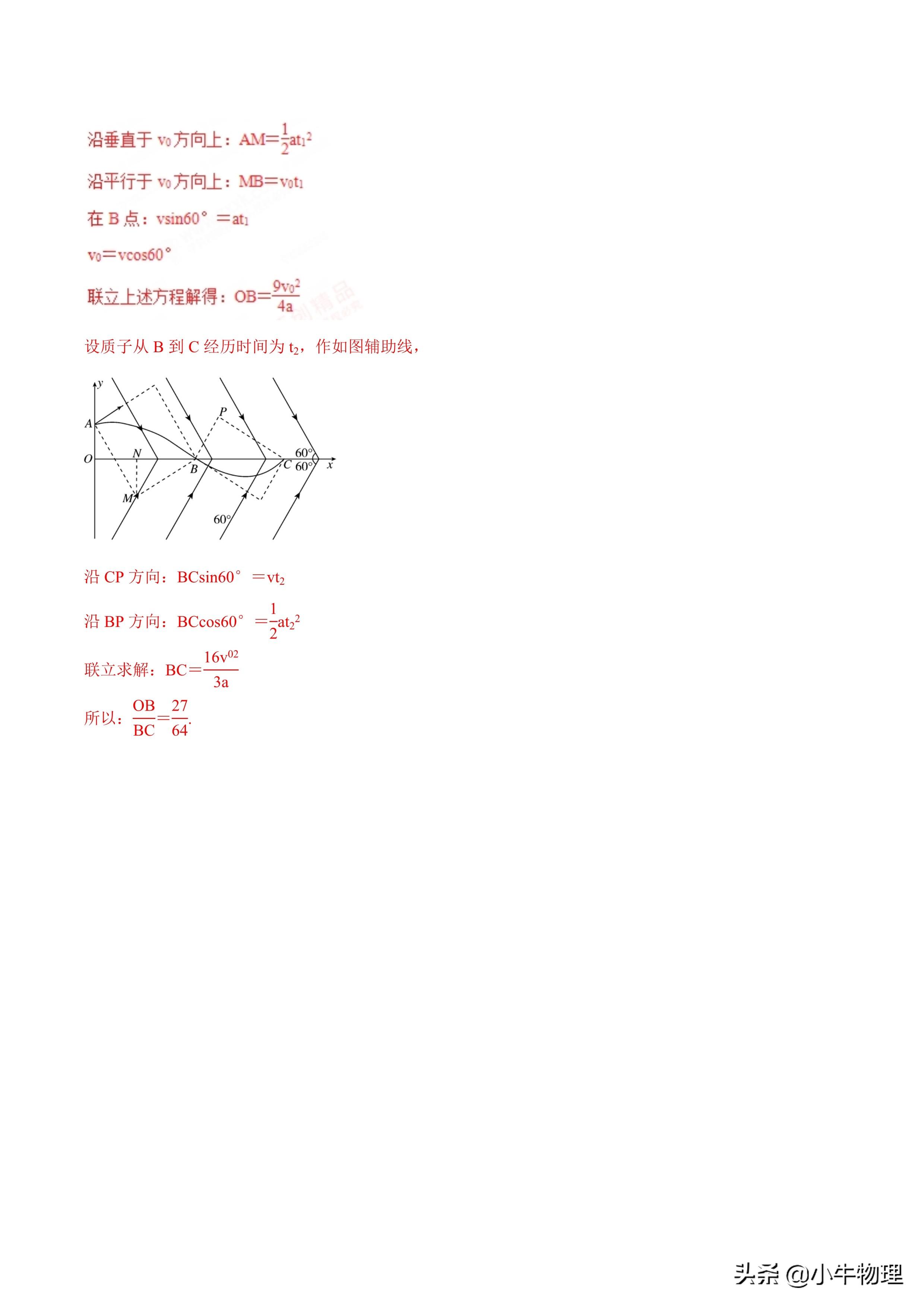 【解答】 粒子垂直射入匀强电场后,受到与初速度方向垂直的恒定电场力作用,所以做类平抛运动。设粒子在电场中运动的时间为t,则