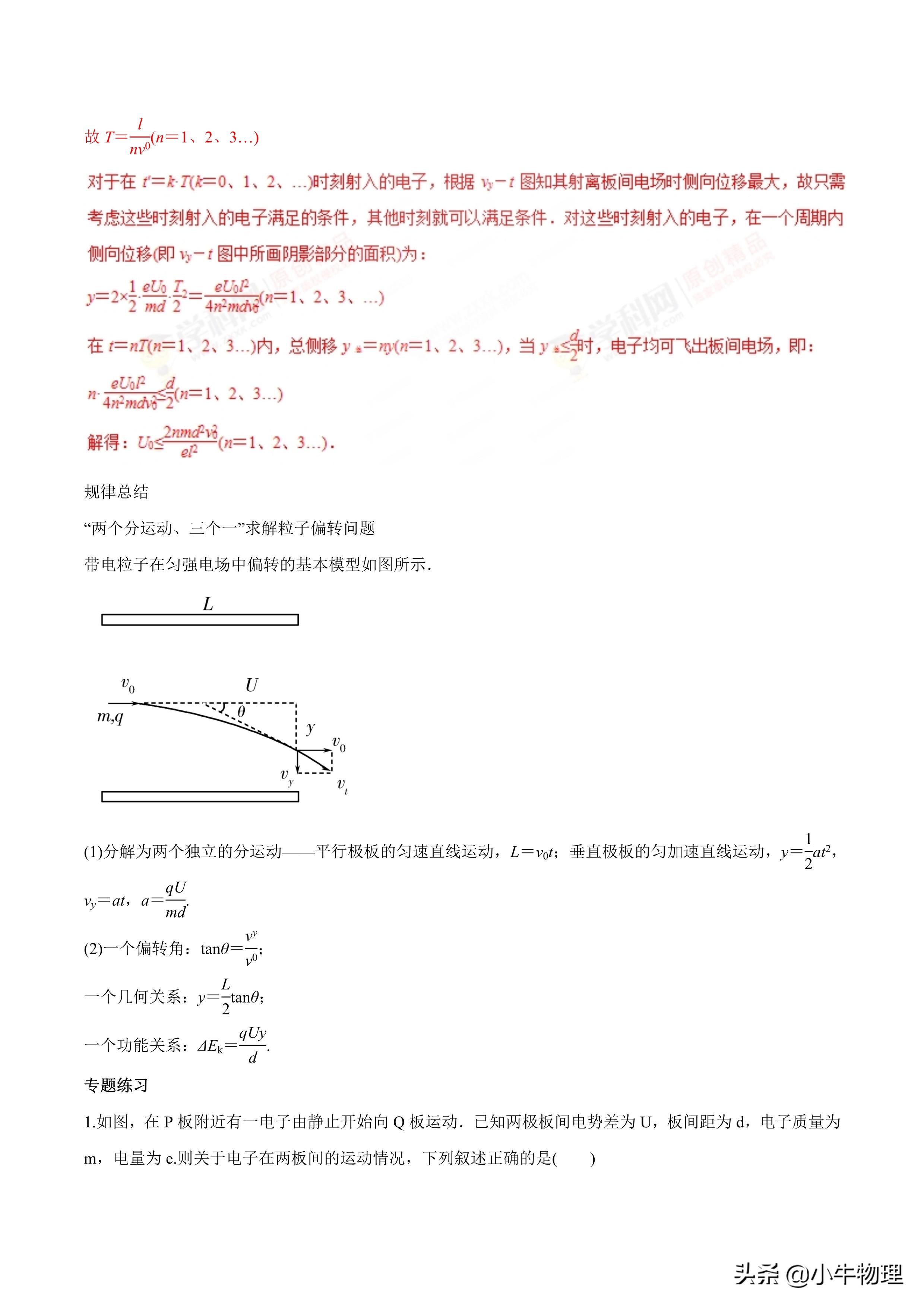 关于高二物理公式 电子偏转 的疑惑. 加速 电场偏转角=qul\mdv^2...[最佳回答]L就是板的长度,和粒子没关系