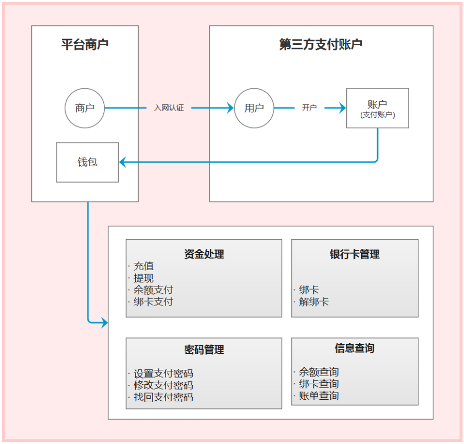 其次功能层面提供统一的钱包开通、充值、扣款和前台的对应查询功能,其余功能暂不开发或沿用旧有系统。