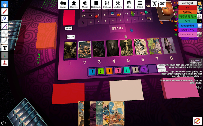 坦白讲,在开始玩《桌游模拟器》之前,我心里还是有不小的顾虑。毕竟我搞明白怎么在MacBook上装Mod就花了很长的时间。除此以外,我还好不容易才学会在某个语音App跟大家联上线,重启了两次游戏才进入房间,进去后发现各种操作都有一定程度的延迟……