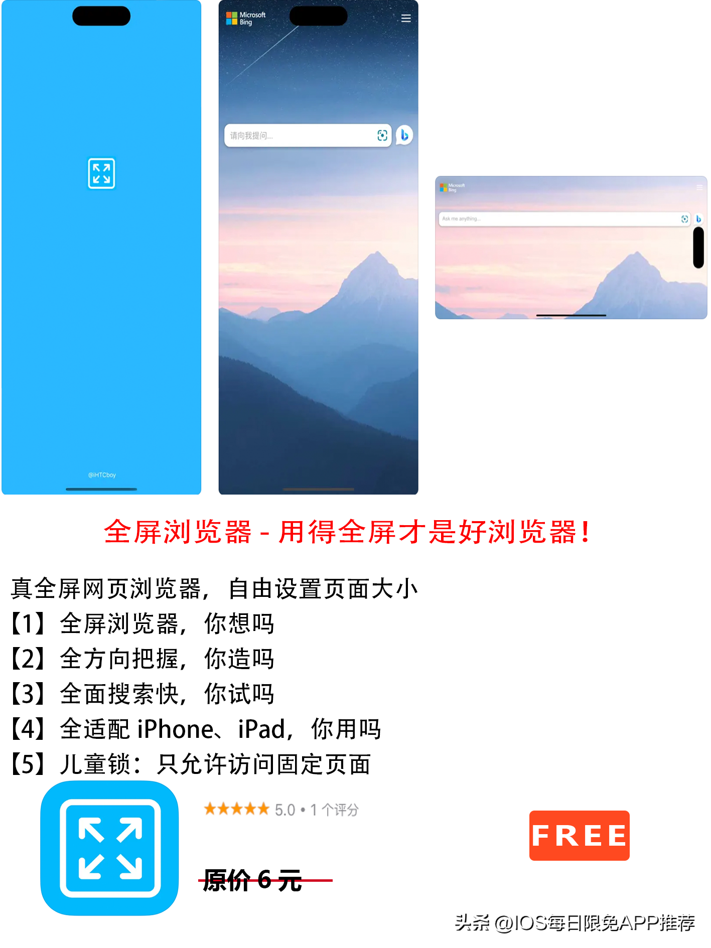 下载链接:https://apps.apple.com/cn/app/全屏浏览器-用得全屏才是好浏览器/id948944368