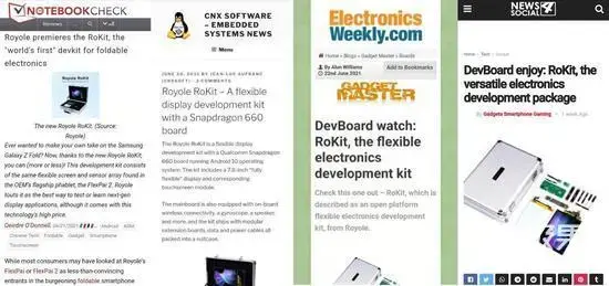 柔宇的这款开发套件名为RoKit,国外最为权威笔记本评测网站Notebookcheck等知名科技数码网站纷纷关注讨论起来,称呼它为“世界第一个可折叠电子产品开发包”。
