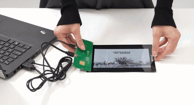 组件操作起来也很方便,柔宇柔性开发套件支持安卓系统,可由HDMI转MIPI、WiFi、USB等信号接入。