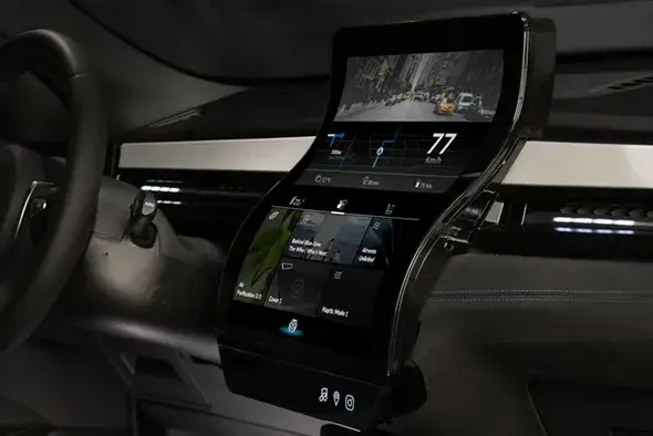 还有专为车里设计的概念柔性平板显示器,更符合车辆内部形状和曲线的设计,还能集成并改善汽车内部的美感。