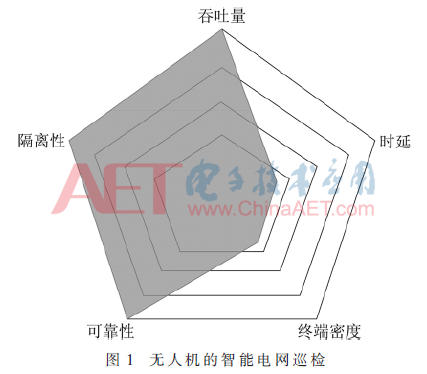 输电线路网络巡检的安全性、准确性是长期困扰电力运维部门的难题。目前,电网主要依靠地面人员或低空飞行的直升机开展电网的巡检工作。近年来,无人机作为一种高科技的巡检利器在电网行业中得到迅速推广与应用。无人机为这种高成本、危险的工作提供了替代方案,基于无人机进行输电线路网络检查可以避免潜在风险,规避紧急情况,提高巡检效率。无人机巡检的另一优势在于远程图像的高清传输。如图1所示,使用无人机巡检对5G网络切片的通信要求如下: