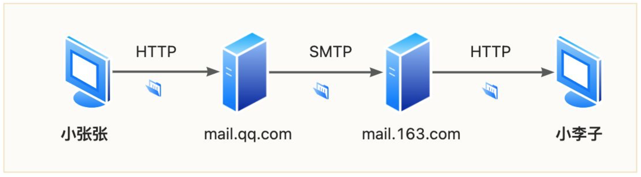 SMTP:Simple Mail Transfer Protocol,即简单邮件传输协议。将邮件从发送方的邮件服务器传输到接收方的邮件服务器。