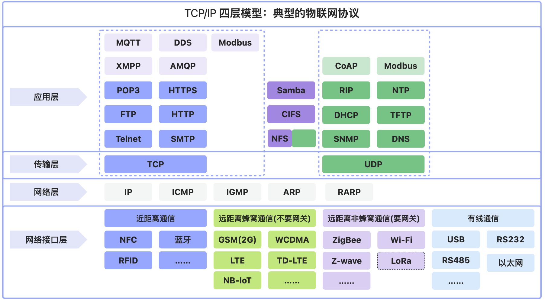 理解 TCP/IP 四层框架是学习物联网相关协议的基础。学习协议是做好物联网设备数据接入、监控、报警、下控、运维、数据分析、智控的基础。