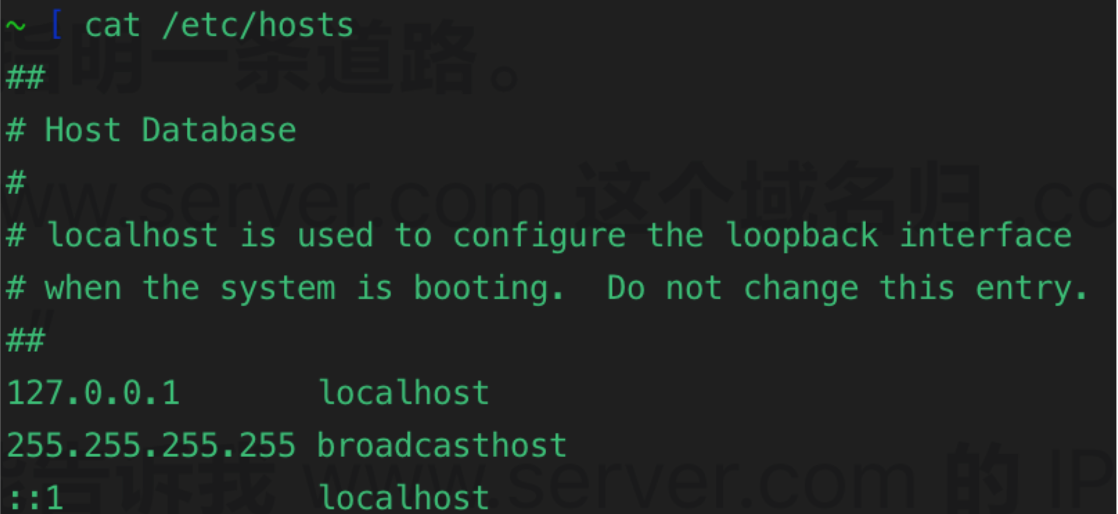 域名和 IP 的对应关系,保存在电脑中的 hosts 文件中,查看本地的域名表 hosts 文件:cat /etc/hosts