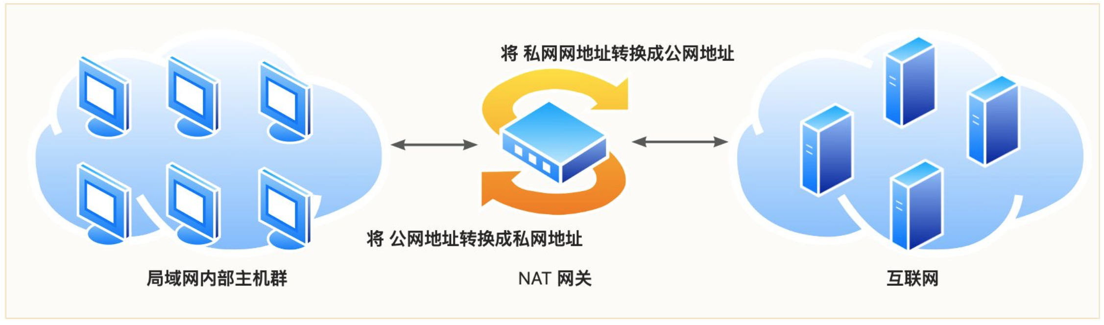 NAT 把同个公司、家庭、学校内的主机对外部通信时,把私有 IP 地址转换成公有 IP 地址。