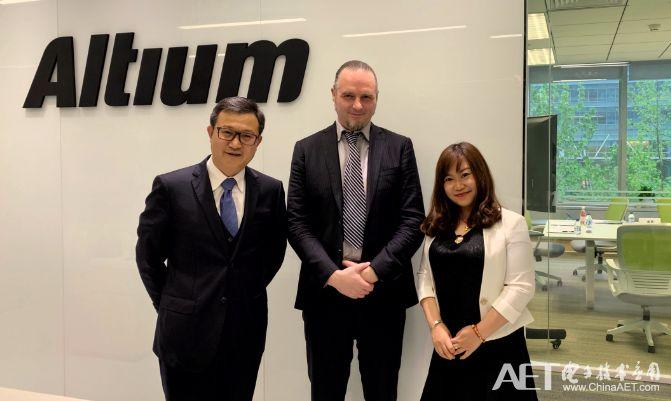 Altium中国区总经理David Read(中)、Altium北方区区域总监胡表峰(左)、Altium中国市场经理凌燕(右)