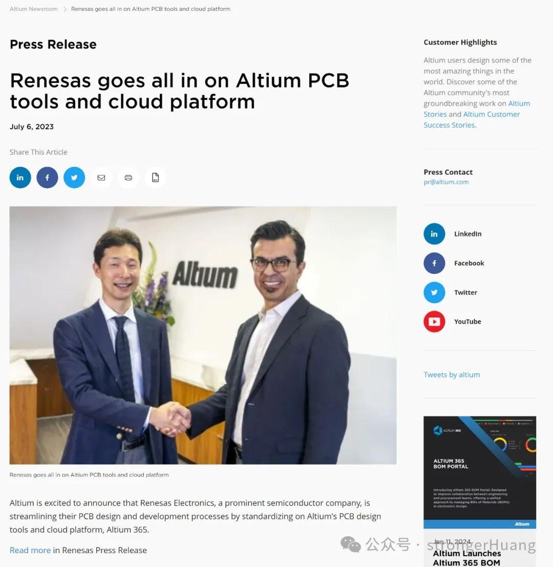 2月15日,瑞萨电子官方正式发布消息:瑞萨电子宣布收购PCB设计软件 Altium。