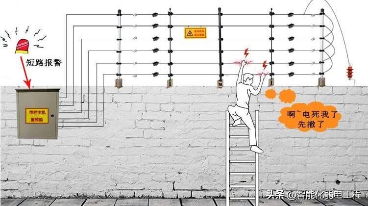 3、静感应式电子围栏,一般将探测电缆预埋在墙内侧,通过感受到现场周围因外来生物产生静电场的变化而报警,但由于小区猫狗生物的影响,一般不采用。