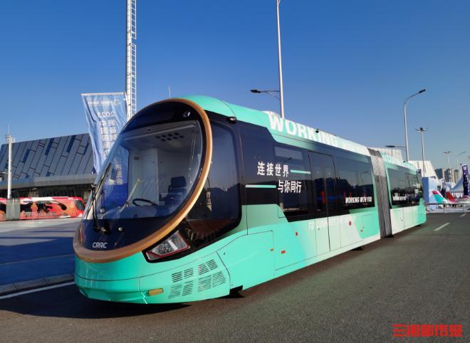 各色展车中,一抹亮眼鲜绿穿梭其间,双车头圆形大视窗颇为显眼。这辆名为超级虚拟轨道列车(SRT)3.0版本是本次室外展览的一大特色。作为首次亮相的新型轨道交通产品,它将穿梭在不同展馆之间,大家可以在现场搭乘体验。