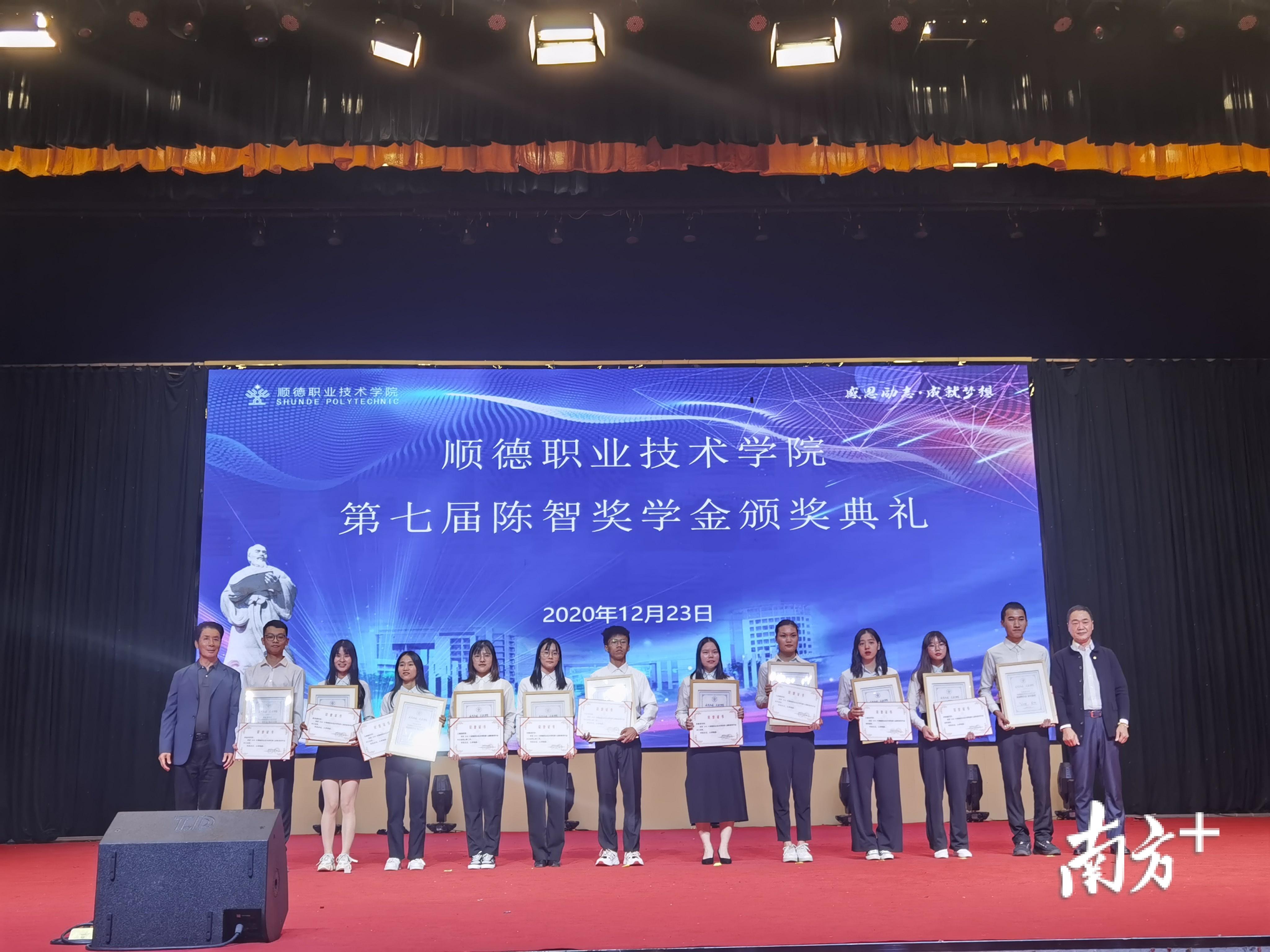德力控股董事长张锦棉、恒基实业董事长孙志恒、奥马电器董事长蔡拾贰、必达保安董事长陈伟禧、德怡电子董事长黄淼……12月23日,顺德职业技术学院梁銶琚堂星光熠熠,一众企业家放下年底繁忙的工作,参加陈智奖学基金理事会第八次会议并出席第七届陈智奖学金颁奖典礼,为69名学子颁发了72.5万元奖学金。