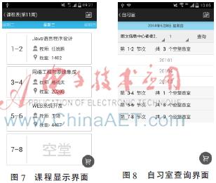 课程表模块提供用户课程表查询功能以及课程信息分享功能。课程显示界面如图7所示。