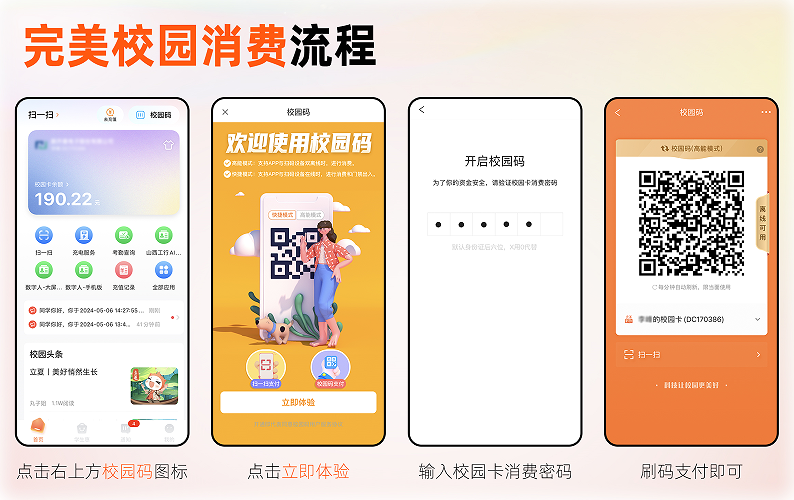 (2)点击【立即体验】,将所生成的二维码对准消费机刷码支付,即可完成消费。