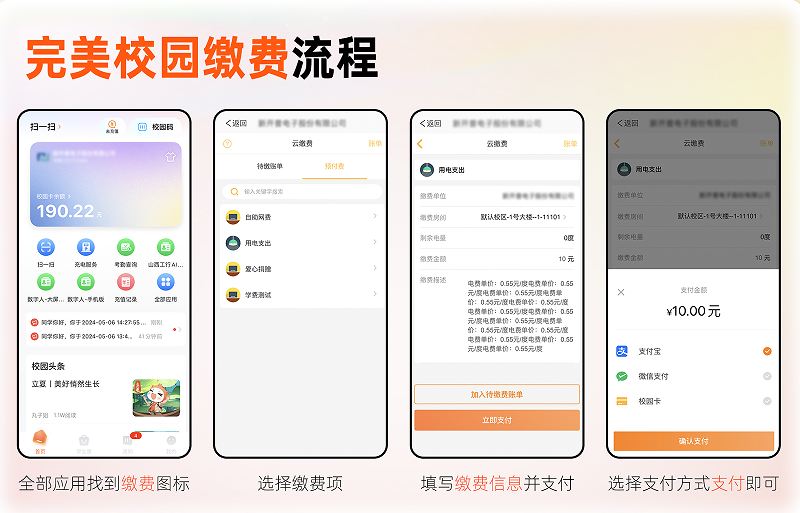 ( 1 ) 通过完美校园 App & 支付宝 完美校园小程序 缴费流程