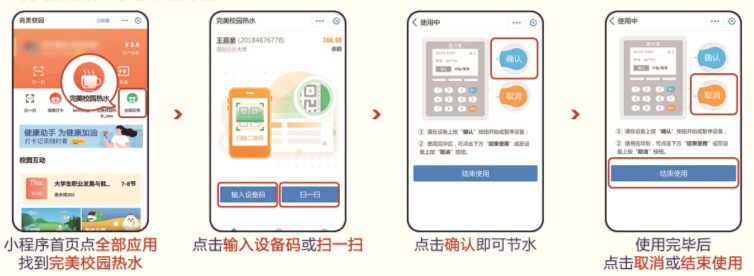 ( 3 ) 完美校园热水( App 和 支付宝小程序使用流程相同)