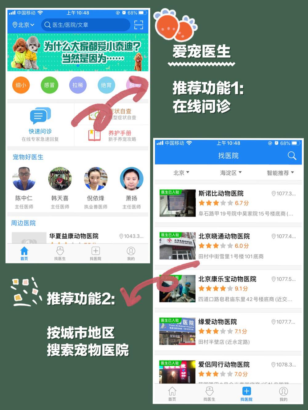 爱宠医生是国内首款宠物医生在线问诊APP,有时候毛孩子出现一些症状,我以前总是去贴吧或者豆瓣问,其实这样对狗狗是不负责任的!所以我觉得手机里备一款给问诊类的APP还是很有必要的,而且爱宠可以定位找到附近的宠物,真的很方便!