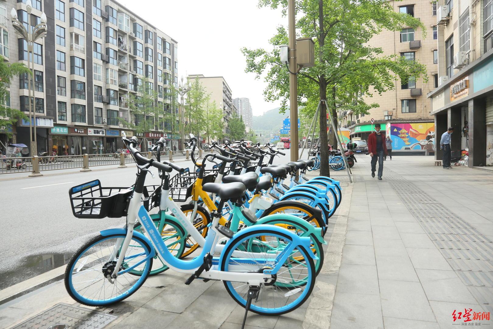 过去随意停放在地铁口、公交站、人行通道上的共享单车,如今被统一停放在白色划线区域内。走近一看,车辆也焕然一新。