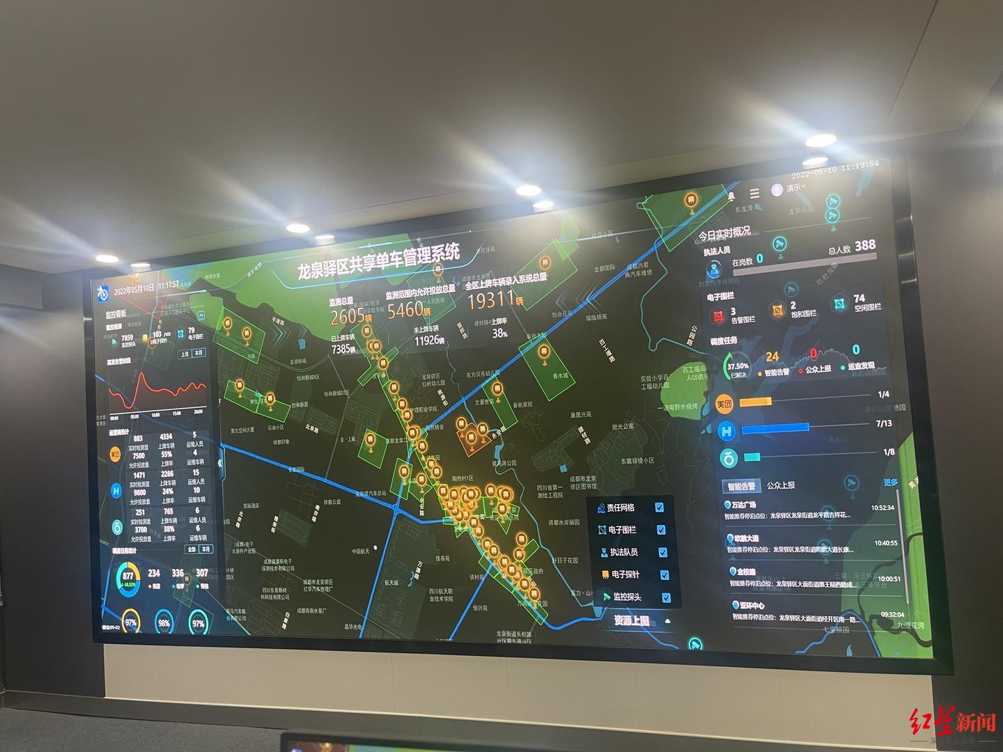 除了上线“电子围栏”限定停车区域,龙泉驿区还研制了一套共享单车监管系统,旨在对车辆投放量、投放率、使用率等进行智能监管。