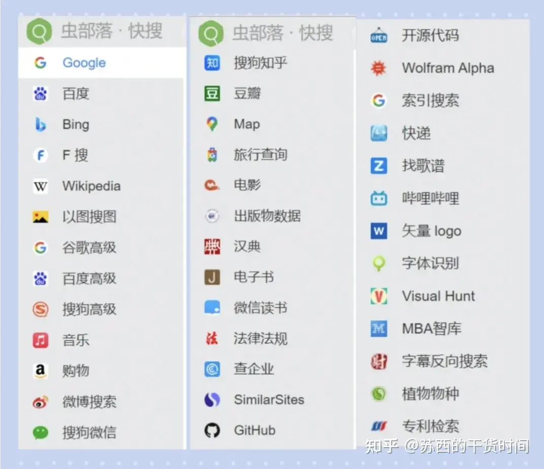 虫部落整合了39类网站综合搜索,内含各类搜索引擎,省去了你切换各个浏览器搜索的时间,大大提高了效率,除了基本搜索外,还集成了学术搜索和电子书搜索引擎,不仅能搜电子书,还能搜资源和音乐