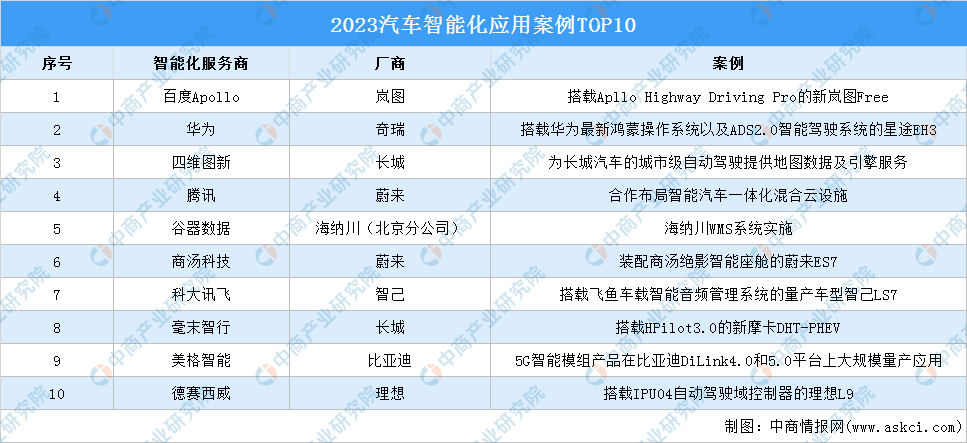 2023汽车智能化应用案例TOP10(附榜单) 中商产业研究院 2023-09-12 10:19