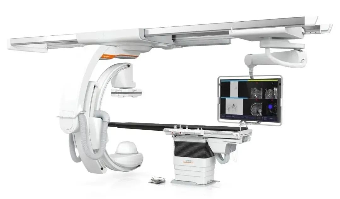 ARTIS icono ceiling 安装了系统最大限度地提高了精度和灵活性,以及Omni Spin 提供先进的3D功能,而 OPTIQ 即使在超选择性程序中也能以最佳图像对比度和剂量提供支持。其多功能性为亚豪米精度Omni Spin C臂可移动到预定义位置,以重复使用DSA或路线图掩码,以减少剂量和对比。