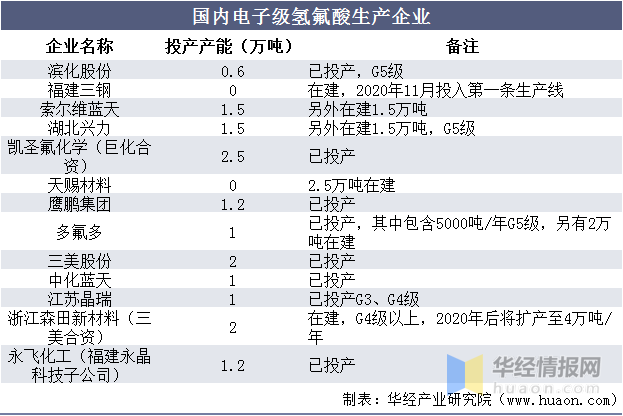 相关报告:华经产业研究院发布的《2021-2026年中国电子级氢氟酸市场发展前景预测及投资战略咨询报告》