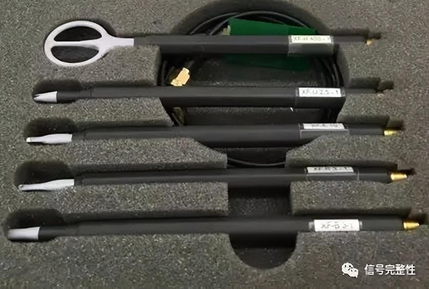 (3)Langer近场磁场探头:测量接受电磁干扰信号,探头类型较多,如下图4所示,一般在选择探头时根据测量的要求进行选择,需要在大范围内寻找时,使用较大的环形探头或者是比较大的扁型的探头;需要精确测量时,选择针式的探头,这种探头可以对每一个器件或者引脚进行测量。