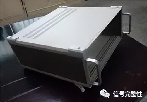 拆解机箱,如图6所示意,发现本机箱为扳金件,机箱各个缝隙处无任何屏蔽处理措施,且机箱接缝处有漆,导致机箱缝隙导电不连续,屏蔽效能下降,从而产生很强的电磁干扰。
