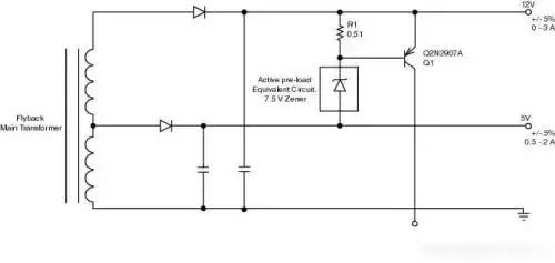 1、反激式电源中的铁氧体磁放大器对于两个输出端都提供实际功率(5V 2A和12V 3A),两者都可实现± 5%调节)的双路输出反激式电源来说,当电压达到12V时会进入零负载状态,而无法在5%限度内进行调节。线性稳压器是一个可实行的解决方案,但由于价格昂贵且会降低效率,仍不是理想的解决方案。