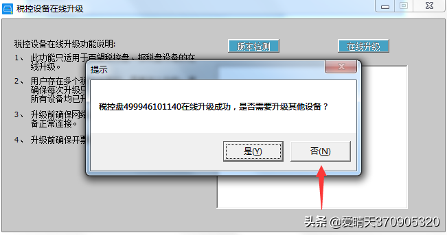 4.税控设备在线升级提示升级成功后,没有其他设备需要升级点否。