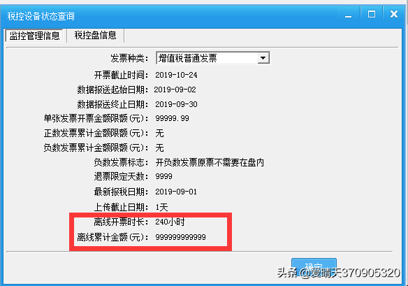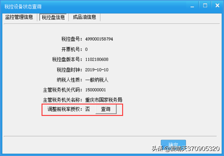 (2)税控设备信息查询模块展示税率授权信息及起始与失效时间。