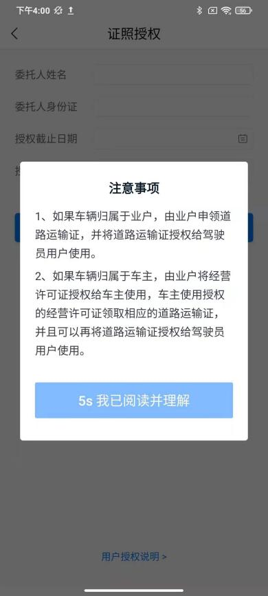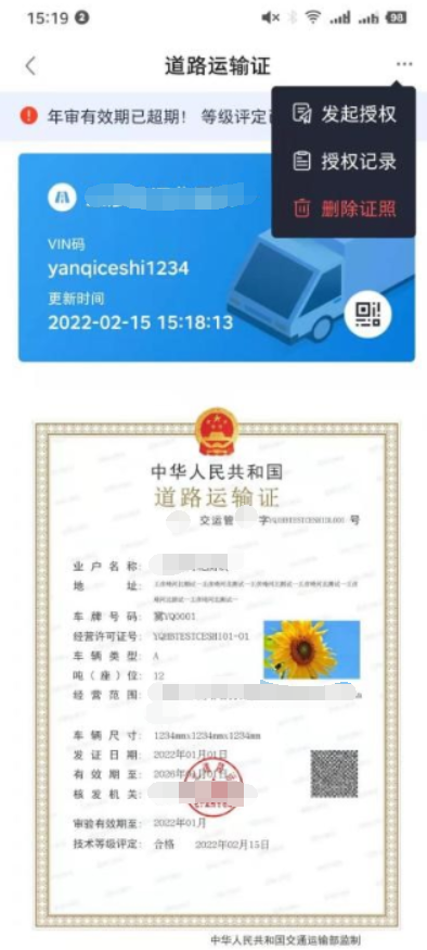 道路运输证授权