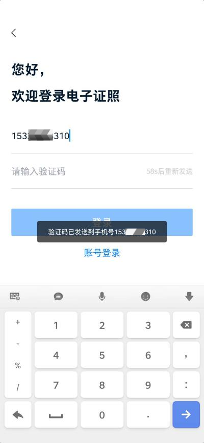 验证码登录输入手机号,获取验证码,点击登录完成账号登录。