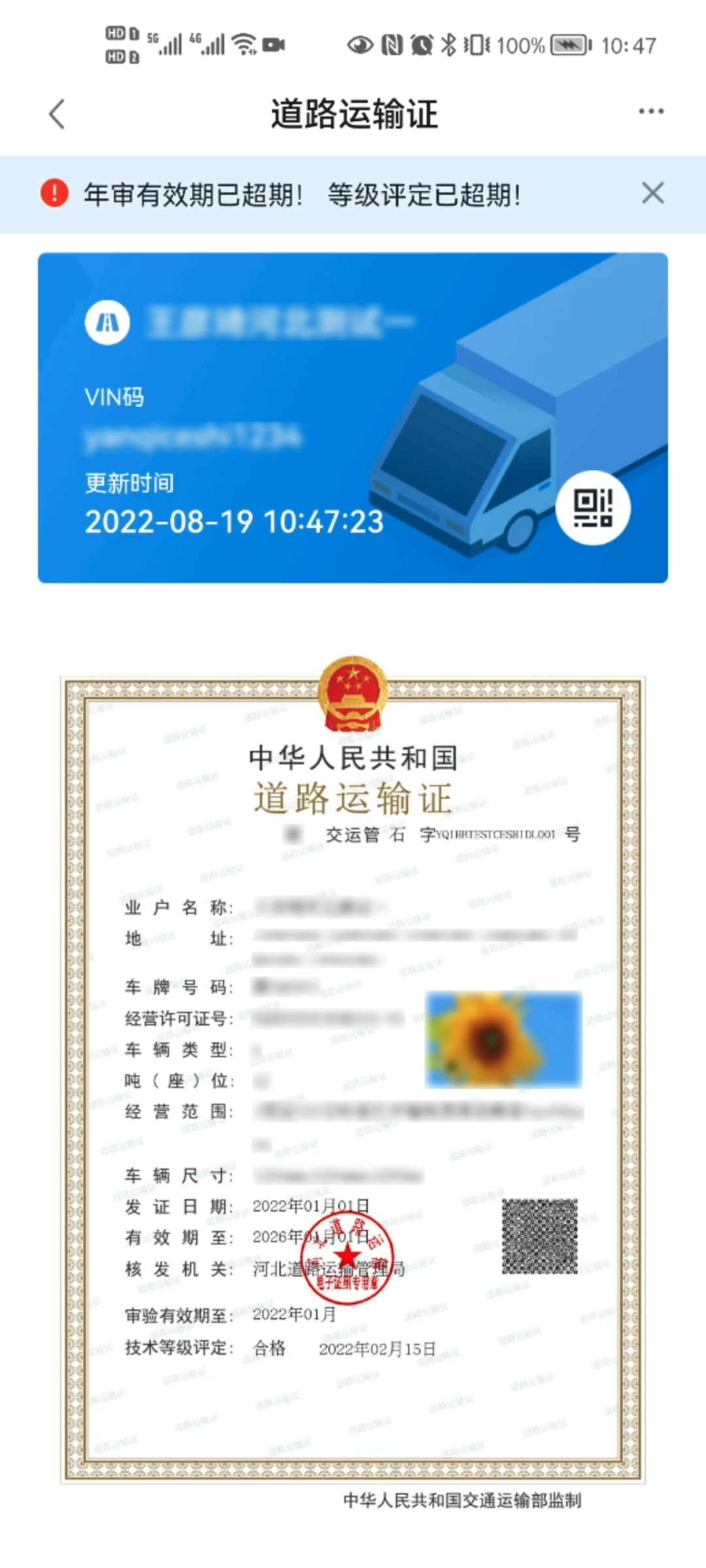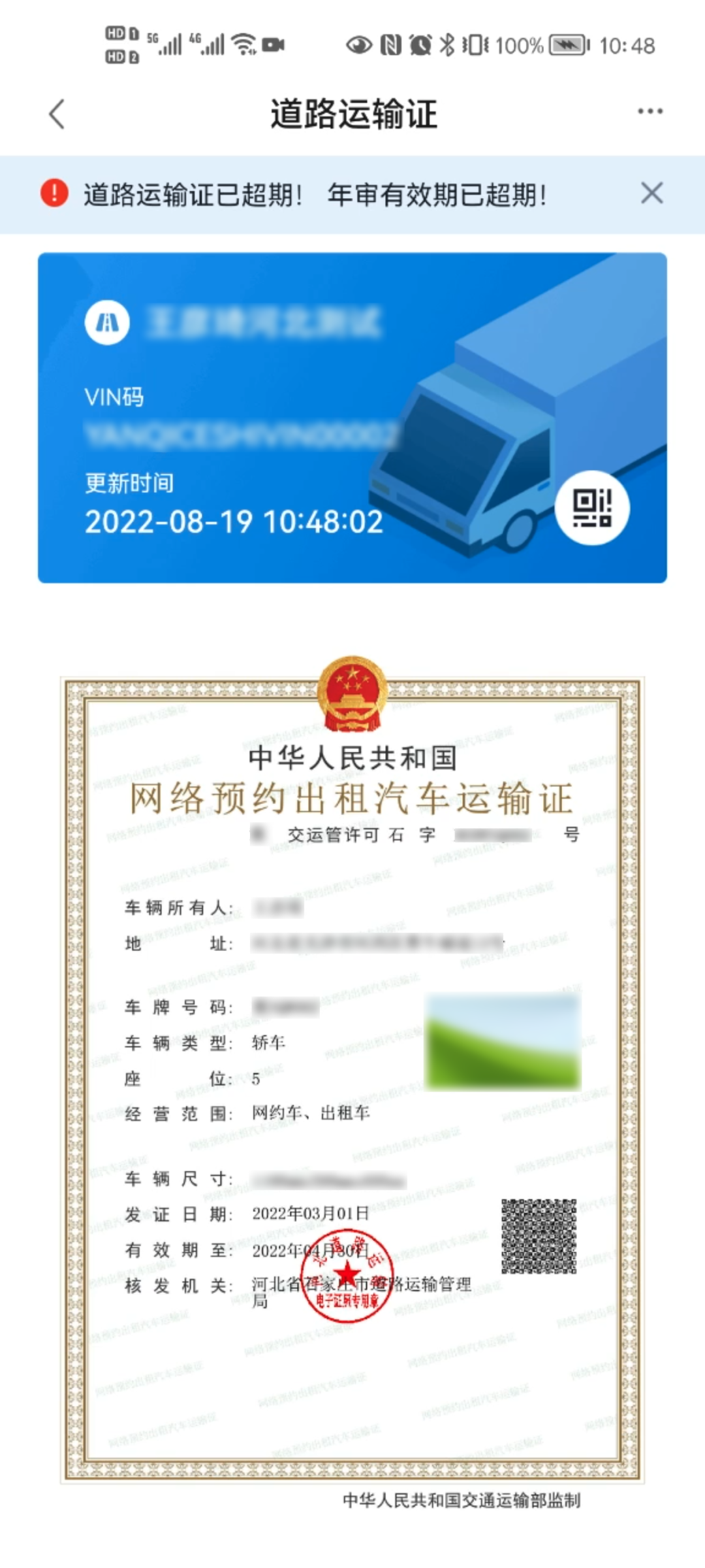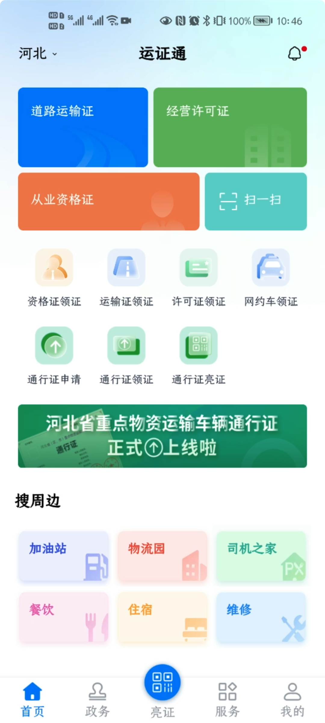 据了解,我省启用的道路运输电子证照为“3类9证” ,包括:道路运输从业人员从业资格证、网络预约出租汽车驾驶员证、巡游出租汽车驾驶员证、道路运输证、网络预约出租汽车运输证、道路运输经营许可证、网络预约出租汽车经营许可证、道路危险货物运输许可证、放射性物品道路运输许可证,其加盖“河北道路运输电子证照专用章”,在全国范围内与纸质证照具有同等法律效力。 道路运输经营者及从业人员可以通过“运证通APP” 或“冀时办APP” 申领、查验,实现“扫脸即办”“网上即办”,让数据多跑路、让群众少跑腿,切实满足广大道路运输经营者和从业人员的新需求、新期待,提升便民服务水平和数字化监管能力。