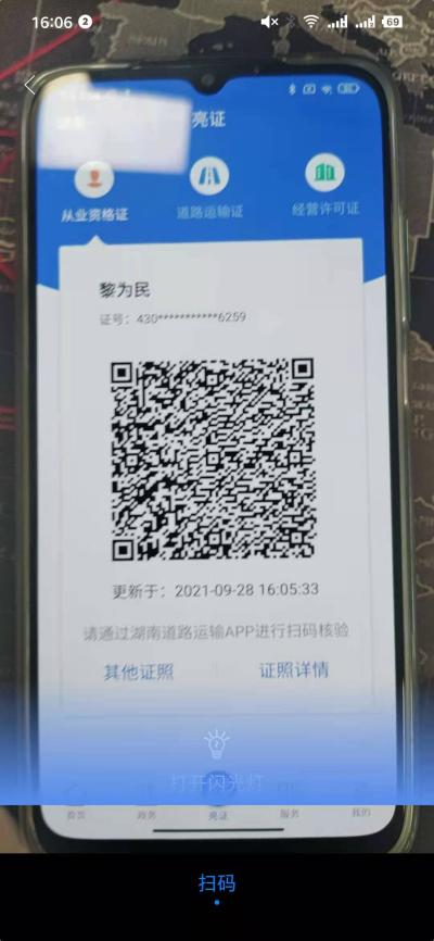 用户点击扫一扫可以扫码对应证照二维码合适证照真伪。