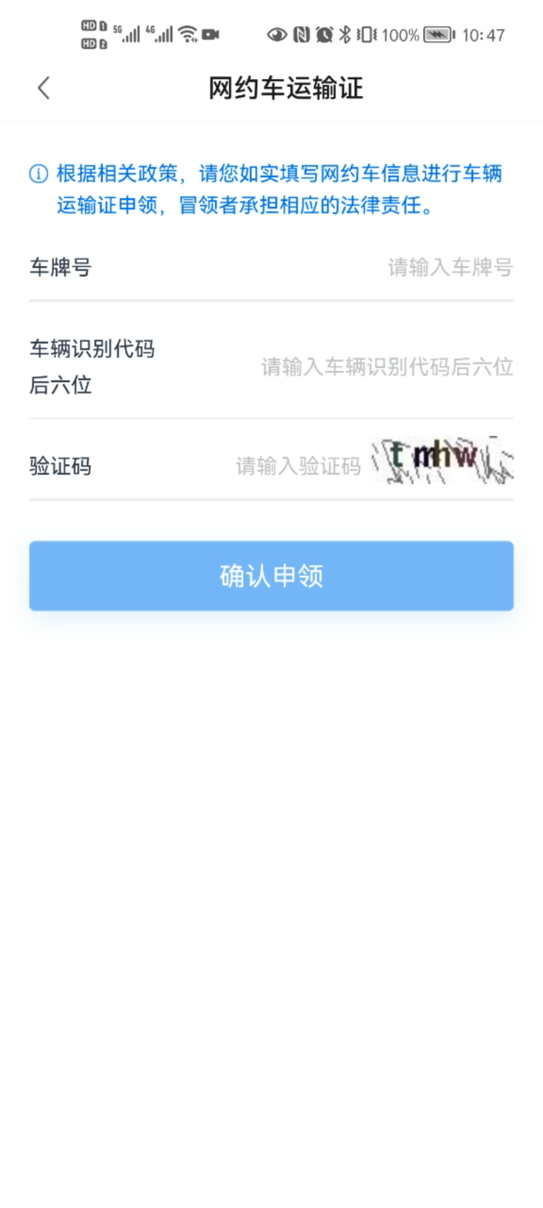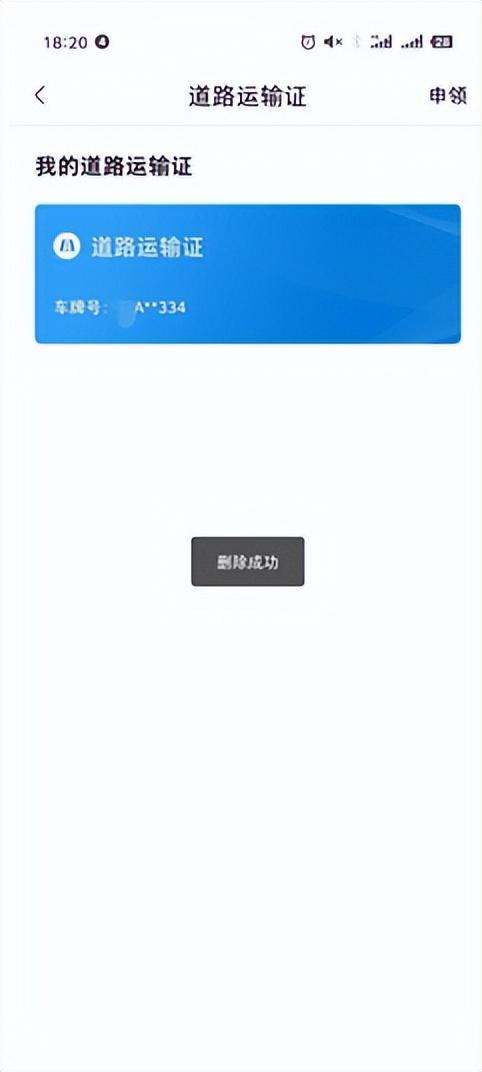 首页点击【运输证领证】图标,进入申领页。