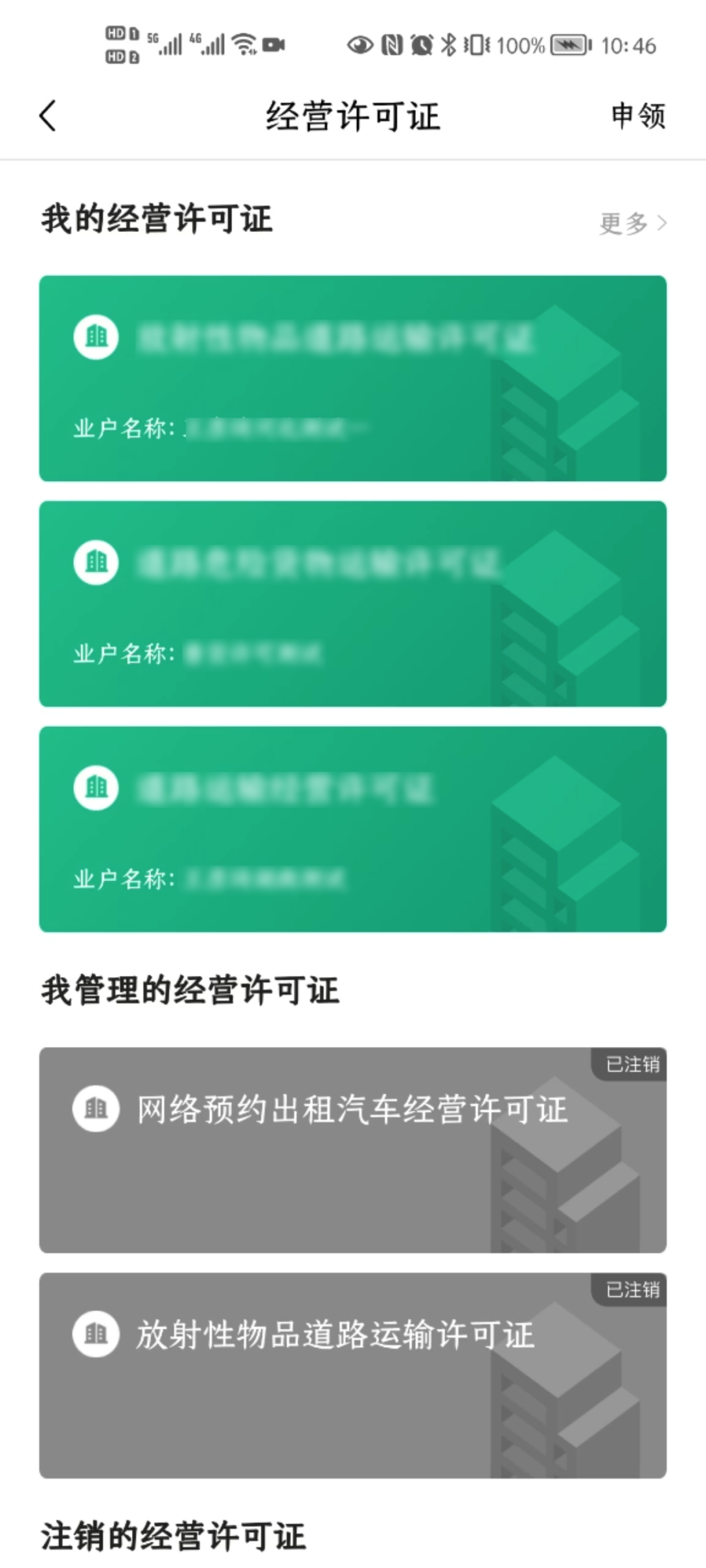 输入对应经营许可证的统一社会信用代码、业户名称、证照类型后,点击领取,完成证照申领并进入证照列表。